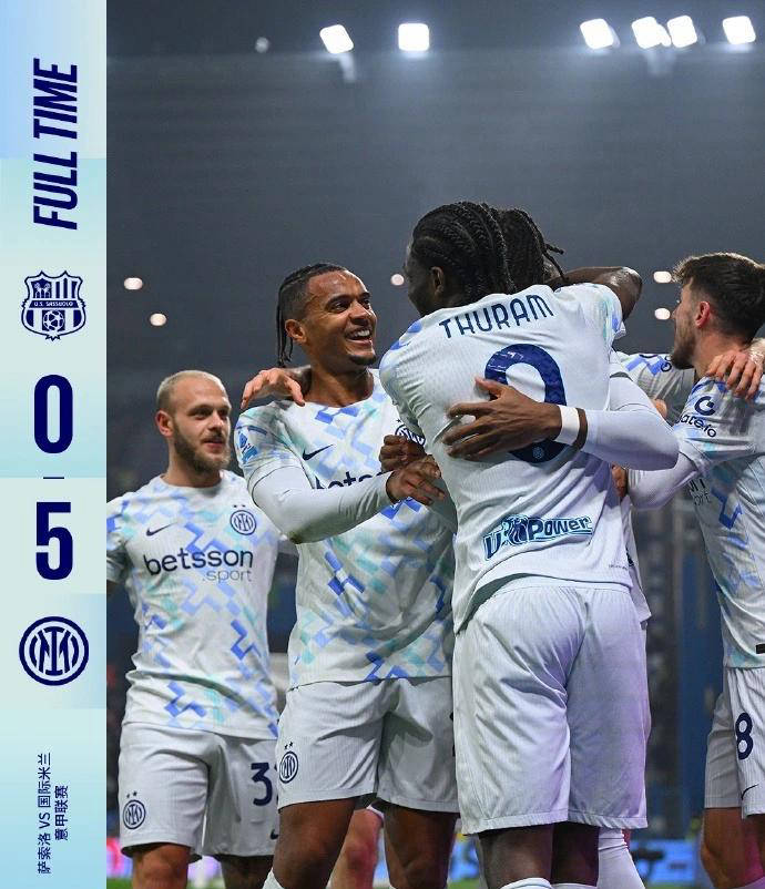 国米客场5球大胜萨索洛 多重利好助力领跑意甲
